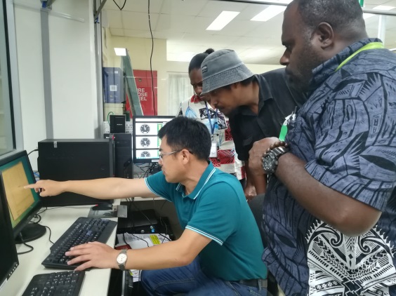 圖3 我中心工作組與瓦努阿圖相關(guān)工作人員就建站溝通洽談
