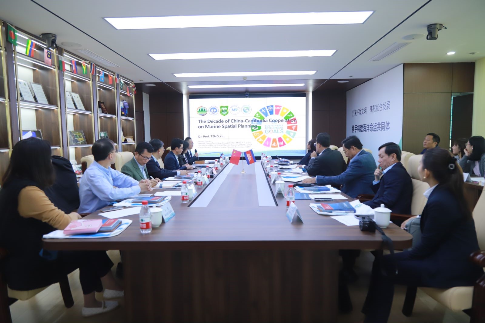 2023年10月20日,柬埔寨環(huán)境部部長楊·索帕勒,國務秘書陳·金孫、孫·文提和卓·帕瑞斯等一行9人訪問國家海洋技術中心,開展了中國-柬埔寨海洋空間規(guī)劃和能力建設高級別研討。國家海洋技術中心主任、黨委書記彭偉主持研討會并致歡迎辭,國家海洋技術中心副主任吳姍姍出席研討會,海洋資源保護利用研究院副院長滕欣在會上作題為“中柬海洋空間規(guī)劃合作十年”的主題報告。