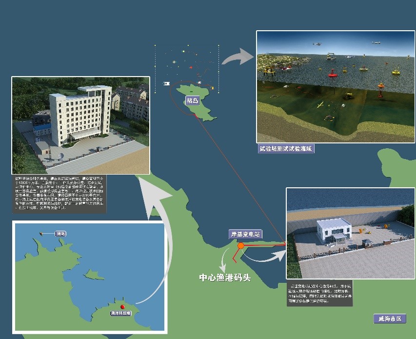國家海洋綜合試驗場(威海)位于山東威海褚島北部海域,距岸約1.4千米,平均水深約45米,在褚島北部約700米處存在一處東西走向的海溝,水深可達70米。2016年取得公益事業(yè)用海使用權證,確權5平方公里海域用于建設儀器裝備試驗平臺、觀測與監(jiān)測系統(tǒng)、波浪能與潮流能試驗泊位。自開始建設以來,已建成錨泊式試驗平臺、浮標試驗平臺、背景場監(jiān)測系統(tǒng)、數(shù)據(jù)管理服務系統(tǒng)、公共服務系統(tǒng),開展海洋儀器設備海上測試服務,岸基配套設施同步建設中,有效支撐了試驗場業(yè)務化運行。