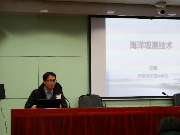 結合中心業務職能,中心業務處處長姜民以“海洋觀測技術”為主題的技術講座從海洋防災減災、海洋生態保護等方面向同學們詳細生動的闡釋了海洋觀測的意義,并帶領同學們參觀了中心展室,對中心在海洋觀測技術領域的主要成果進行了重點講解。