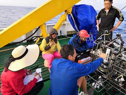 本航次進行海試的國產CTD儀器共計13臺,本次海試無論從人員還是儀器數量上均是傳感器室歷年來規模最大的一次,累計獲得剖面數據近百個。在這次摸底海試過程中,共產黨員發揮了先鋒模范作用,堅持一線工作,盡心盡責,按照海試安排輪班作業,不分晝夜。作為此次海試的組織者和課題負責人,田雨同志在海試全過程中堅持在第一線工作,堅持每一次儀器下海前做最終安全檢查,剖面回收第一個抓取儀器。特別是共產黨員廖和琴、許麗萍兩名女同志均是首次參加海上試驗,在海試中克服了海上顛簸和暈船導致的身體不適,做到了“飯可以少吃,但活絕不會少干”,保障儀器可靠工作和數據回收完整,為海試的完滿完成發揮了不可或缺的作用。