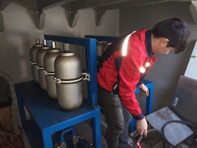 業(yè)務(wù)工作日前,我中心能源室研制的漂浮式浮力擺波浪能發(fā)電裝置完成了對裝置液壓系統(tǒng)的測試,在此前已完成浮式平臺和波浪能裝置加工制造的基礎(chǔ)上,開始進(jìn)行安裝調(diào)試工作。