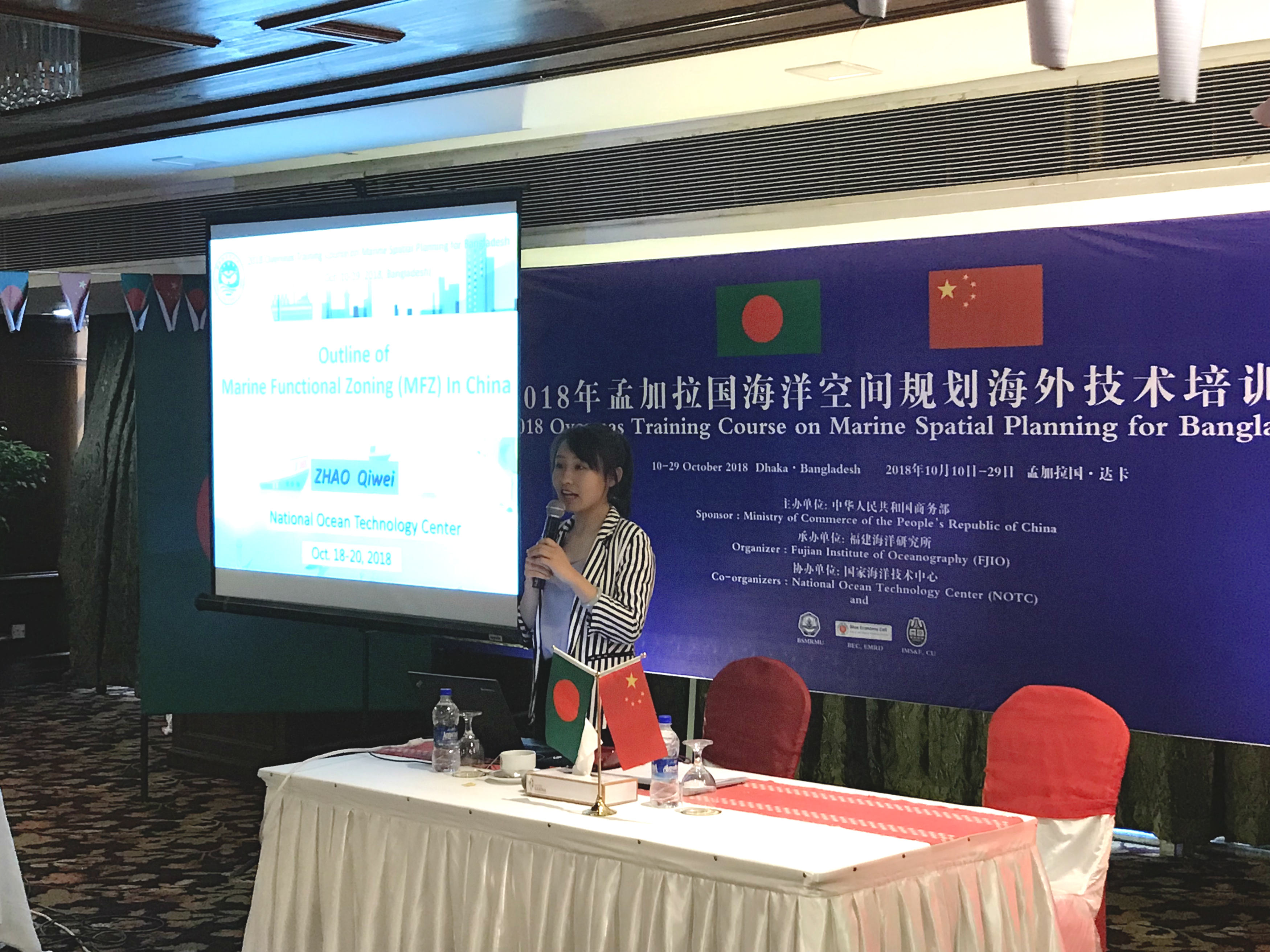 20181029日,“孟加拉國海洋空間規劃海外技術培訓班”結業典禮在孟加拉國首都達卡順利舉行。我中心副主任隋軍受邀參加本次結業典禮并致辭。 另外,中國駐孟加拉國使館經商處參贊李光軍、孟加拉國航運部秘書長穆罕穆德•阿布達斯•薩瑪德、孟加拉國海洋研究所所長阿肖克•庫瑪•比斯瓦斯以及中孟雙方近80位嘉賓也受邀參加了結業典禮。