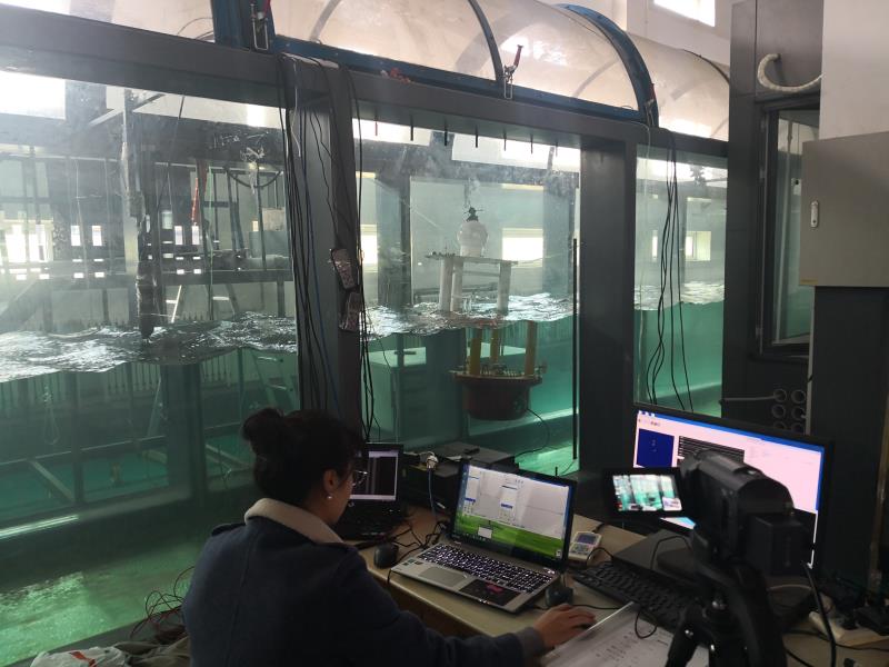 業(yè)務(wù)工作3月25日至4月17日期間,中心動(dòng)力環(huán)境實(shí)驗(yàn)室受中電科海洋信息研究院有限公司委托,在風(fēng)浪流生成水槽完成了浮臺(tái)模型極端海況試驗(yàn)。至此,歷時(shí)4個(gè)月多時(shí)間,中心動(dòng)力環(huán)境實(shí)驗(yàn)室完成了中電科海信院委托的包括自由衰減、頻響函數(shù)確定、不規(guī)則波耐波性、拖曳阻力和極端海況試驗(yàn)在內(nèi)的全部試驗(yàn)委托合同內(nèi)容。