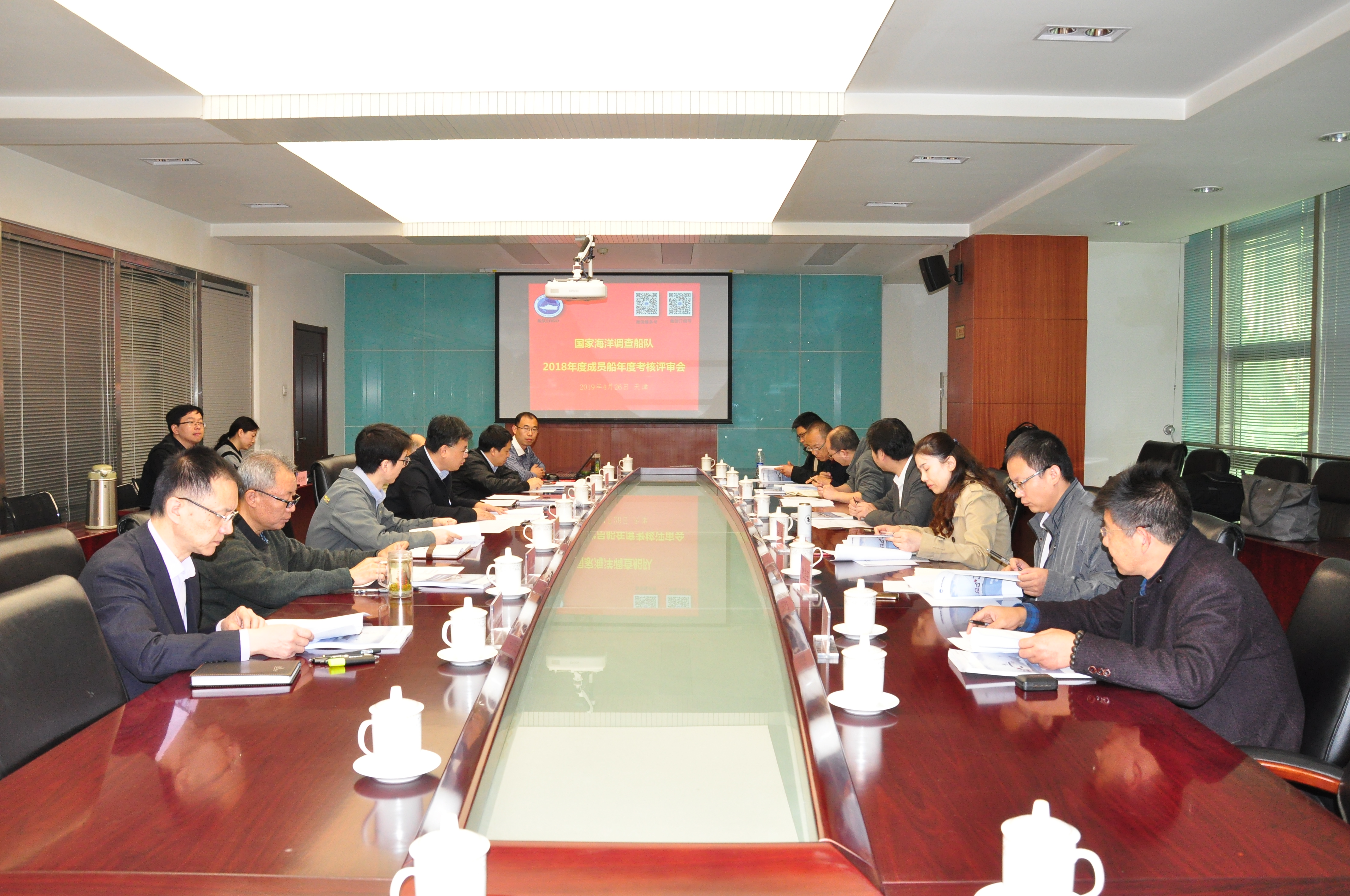 船隊技術支撐單位從船隊現狀、主要開展工作、年度考核工作背景及2018年考核情況等方面對船隊工作進行了簡要介紹。評審專家組依據《國家海洋調查船隊管理辦法》和《國家海洋調查船隊管理實施細則》,對32艘成員船的年度運行情況報表和運行報告、技術支撐單位統計的成員船年度提交材料情況以及用船單位提交的成員船使用質量評估表等材料討論質疑,并形成考核意見??己艘庖妼⑸蠄蟠爡f調委員會進行審定。