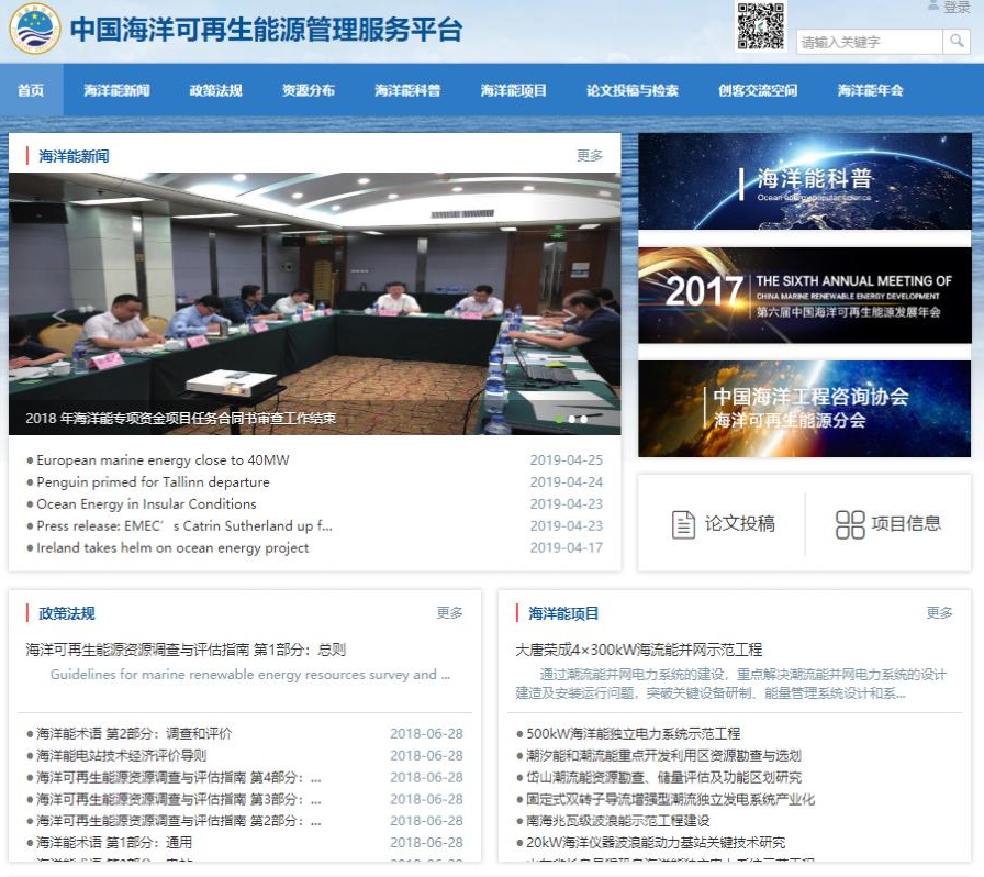 業(yè)務(wù)工作日前,“中國海洋可再生能源管理服務(wù)平臺”正式上線,進(jìn)入試運行階段。該平臺是2016年海洋能資金項目“海洋能資源數(shù)據(jù)服務(wù)系統(tǒng)建設(shè)”的一項重要成果。
