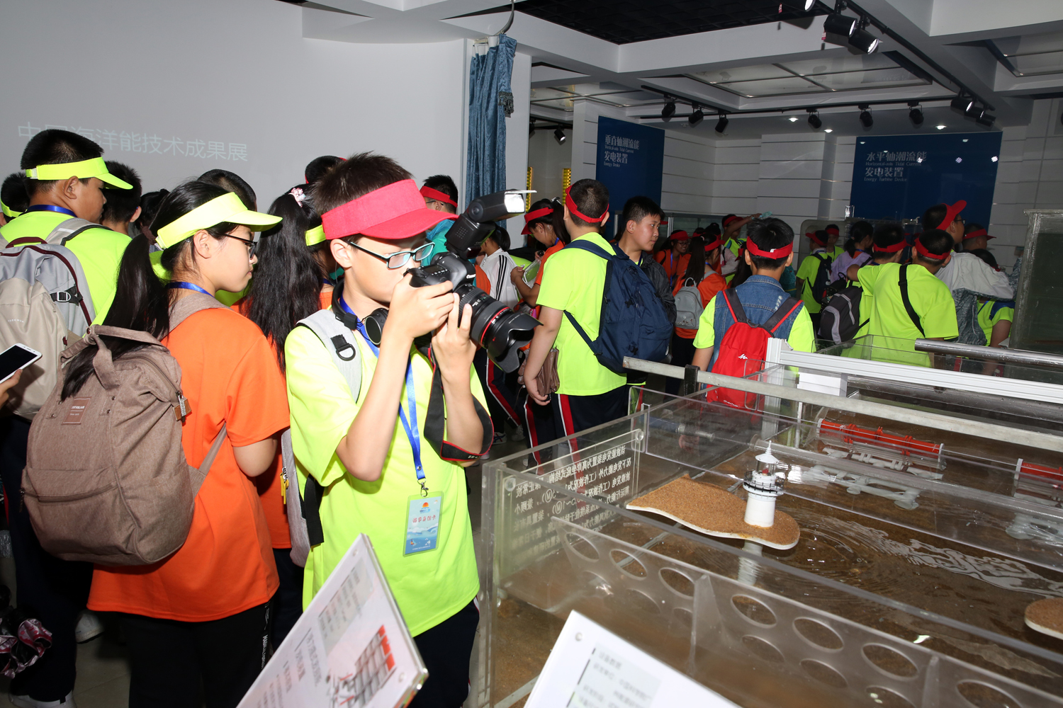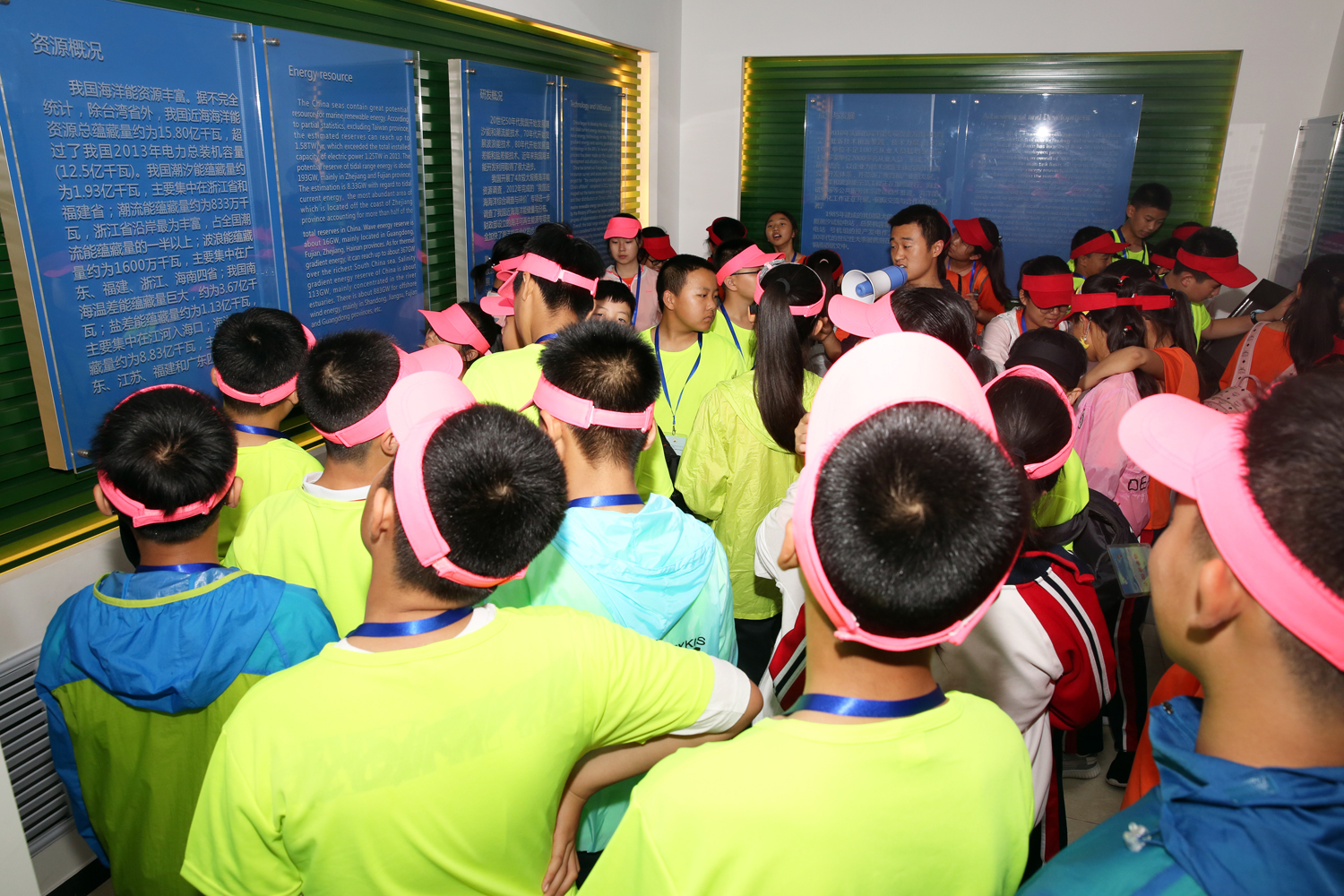 在海洋能發電裝備展館,講解員生動形象地講述各種海洋發電裝置的原理,并讓孩子們親身體驗發電裝置現場發電過程。輕輕推動裝置搖臂,產生水流,顯示發電產生的燈泡隨之亮起來,孩子群里響起一陣熱烈的驚呼聲。