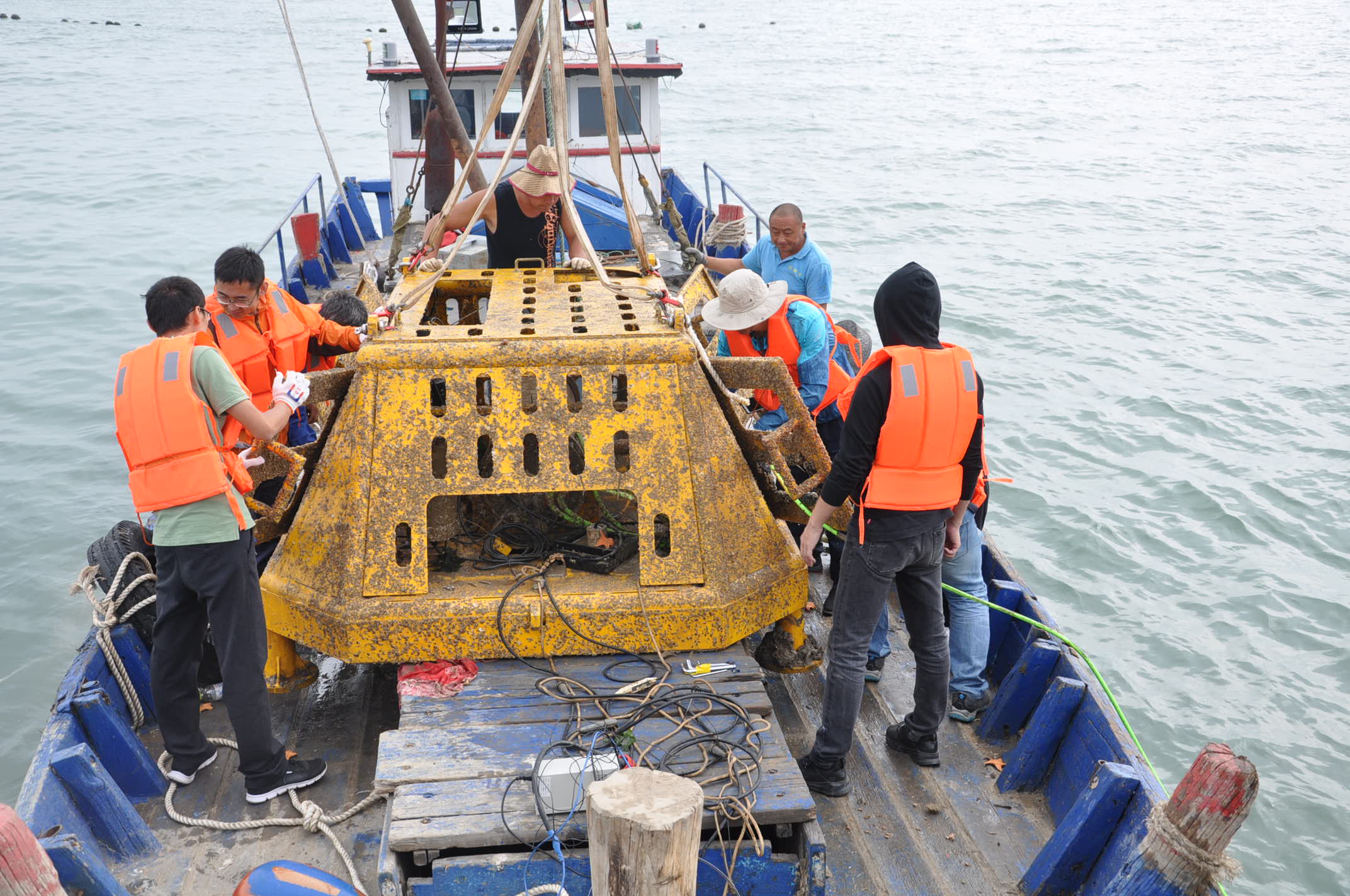 目前,項目任務(wù)指標已基本完成,計劃11月份完成驗收工作。對項目取得的成績和取得的經(jīng)驗做下總結(jié)主要有以下幾個方面:(1)水下節(jié)點為中心自主研發(fā),完成水下供電、控制、通信和數(shù)據(jù)采集,為開展海底觀測網(wǎng)的研究奠定了基礎(chǔ)。(2)夏天海洋生物附著非常嚴重,影響傳感器的測量結(jié)果和攝像機鏡頭,應探討更好的防生物附著措施。(3)近海漁民活動頻繁,水下電纜被漁民拽壞,節(jié)點被漁民拉翻,造成設(shè)備故障,如何保障設(shè)備安全需要考慮。(4)水下設(shè)備在運行過程中也發(fā)生了一些供電和傳感器外殼腐蝕的問題,在這方面也有待進一步研究。(5)傳感器布放在海底,底部海水比較渾濁,一些監(jiān)測傳感器特別是光學傳感器的環(huán)境適應性也應重點考慮。(戰(zhàn)略室 李超)
