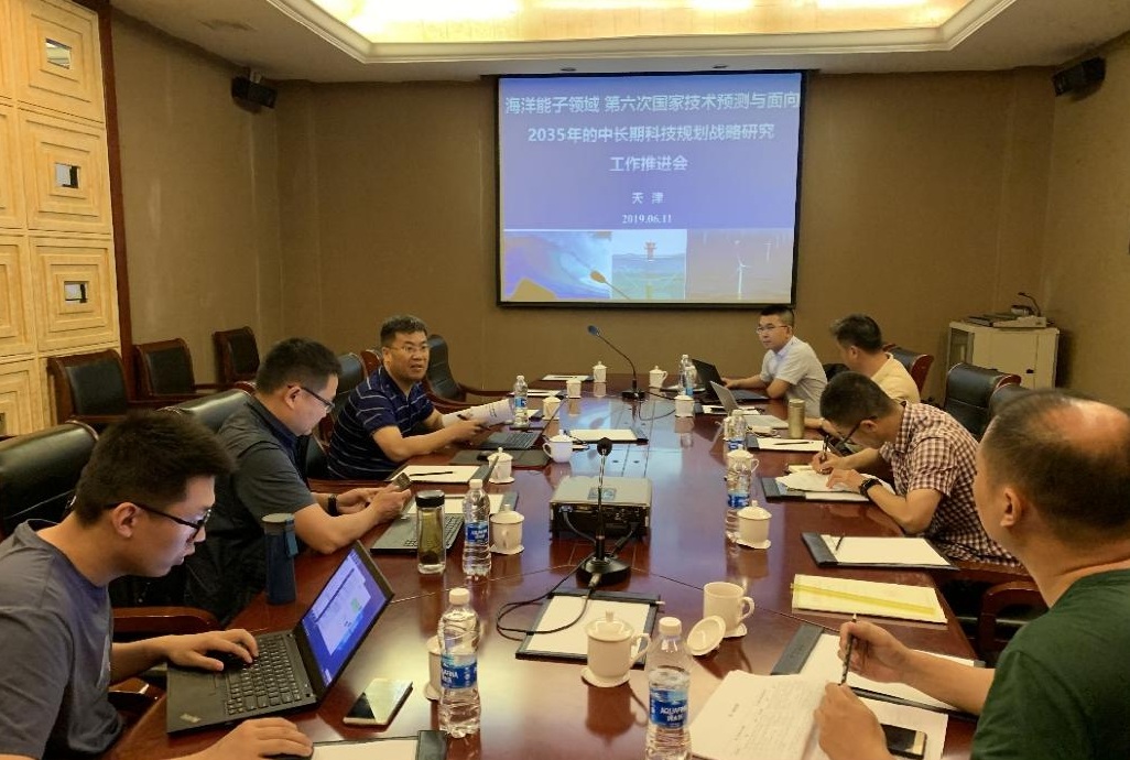 2019年6月11日,中心在天津組織召開海洋能技術發展研討會,推進海洋能技術預測及中長期戰略規劃工作,海洋能子領域技術預測組及戰略研究組專家及代表等8人參會。