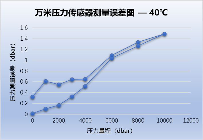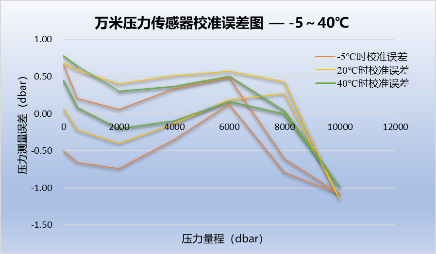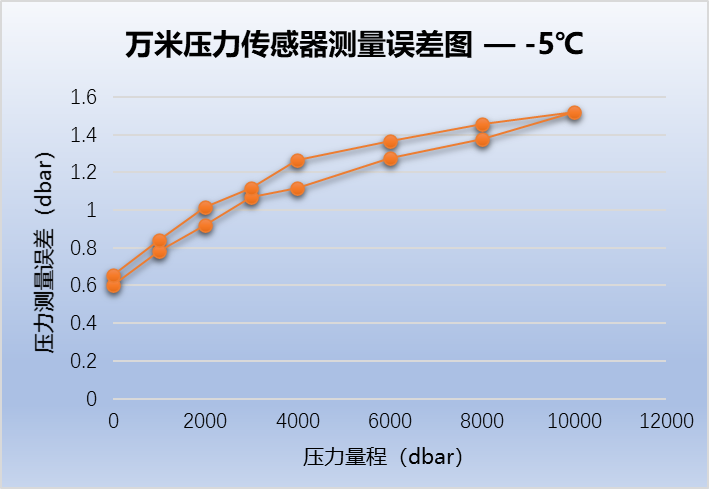 同期,中心開展了高精度萬米壓力傳感器的研制和測試。借鑒十二五“863”和十三五重點研發計劃項目成果,項目組采用國內技術最為成熟的壓阻式壓力傳感器進行高精度萬米壓力傳感器的研制,從材料和電路、測溫方法、補償算法等方面進行技術攻關,在全溫區(-5-40℃)內測量誤差絕對值最大為1.2dbar,折合精度為±0.012%F.S,精度達到國際先進水平,在技術上初步解決了高精度萬米壓力測量的卡脖子問題。