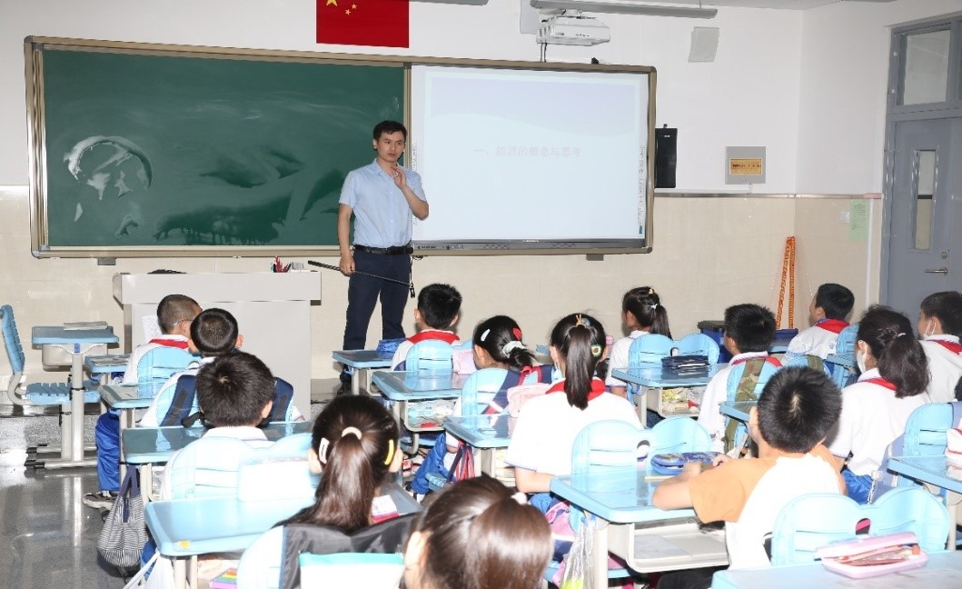 結(jié)合中心海洋技術(shù)特色,中心梁捷研究員、陳利博工程師做了以“走近海洋”“海洋可再生能源”為主題的兩場精彩的專題講座。專家們用風趣幽默、純樸生動的語言、豐富的圖片資料以及精彩的短視頻介紹了海洋的形成、海洋觀測要素、海洋觀測裝備、海洋可再生能源等方面的知識,把孩子們帶入了一個全新的海洋科學世界,開拓了他們認知視野,激起了他們對海洋科學技術(shù)領(lǐng)域的濃厚興趣。學生們被專家們精彩的演講所感染,爭先恐后地舉手提問,現(xiàn)場氛圍十分活躍。