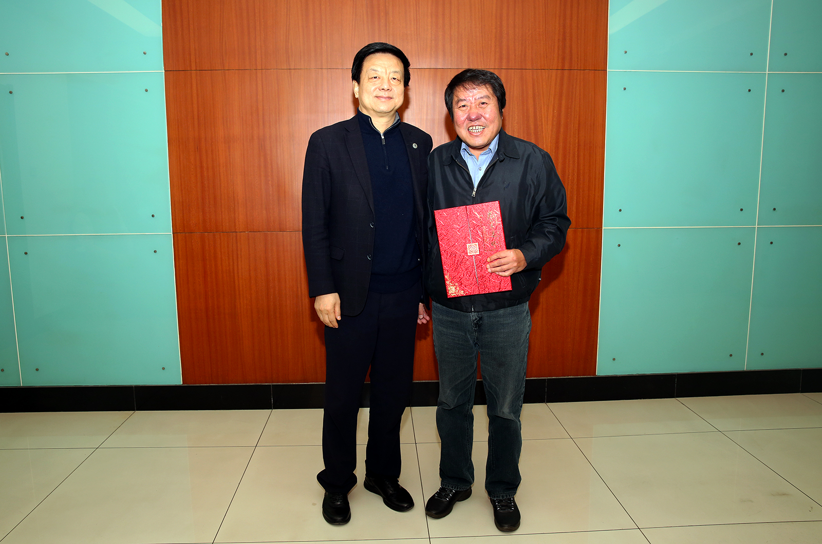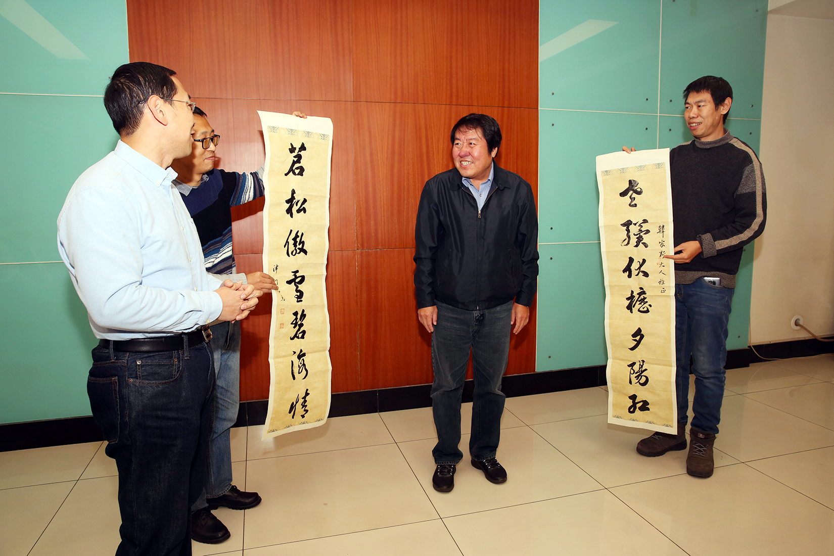 會上,陳武軍、隋軍、王世福分別為韓家新同志送上感謝信、退休紀念品和《退休服務卡》,韓家新同志原所在分會和支部職工代表分別為他敬贈了鮮花和手書對聯,表達中心職工對老領導的愛戴。