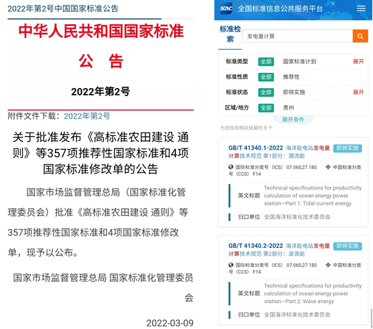 業(yè)務(wù)工作近日,我中心承擔(dān)的《海洋能電站發(fā)電量計(jì)算技術(shù)規(guī)范 第1部分:潮流能》(GB/T 41340.1-2022)和《海洋能電站發(fā)電量計(jì)算技術(shù)規(guī)范 第2部分:波浪能》(GB/T 41340.2-2022),經(jīng)國(guó)家市場(chǎng)監(jiān)督管理總局、國(guó)家標(biāo)準(zhǔn)化管理委員會(huì)批準(zhǔn),于2022年3月9日正式發(fā)實(shí)施。《規(guī)范》確立了海洋能電站發(fā)電量計(jì)算的流程、微觀選址和發(fā)電量計(jì)算方法,規(guī)定了潮流能和波浪能電站發(fā)電量計(jì)算的工作流程、陣列規(guī)模的等級(jí)劃分、資料收集、現(xiàn)場(chǎng)觀測(cè)、數(shù)值模擬、微觀選址、發(fā)電量計(jì)算方法和技術(shù)報(bào)告的編寫(xiě)內(nèi)容,是指導(dǎo)我國(guó)海洋能電站發(fā)電量計(jì)算的基礎(chǔ)性標(biāo)準(zhǔn)。《規(guī)范》的正式實(shí)施將為潮流能和波浪能電站發(fā)電量計(jì)算提供支撐和依據(jù),研制海洋能電站發(fā)電量計(jì)算技術(shù)規(guī)范,規(guī)范海洋能發(fā)電站計(jì)算方法,是大規(guī)模開(kāi)發(fā)利用海洋能資源的重要技術(shù)保障。(海洋能發(fā)展中心 吳國(guó)偉)