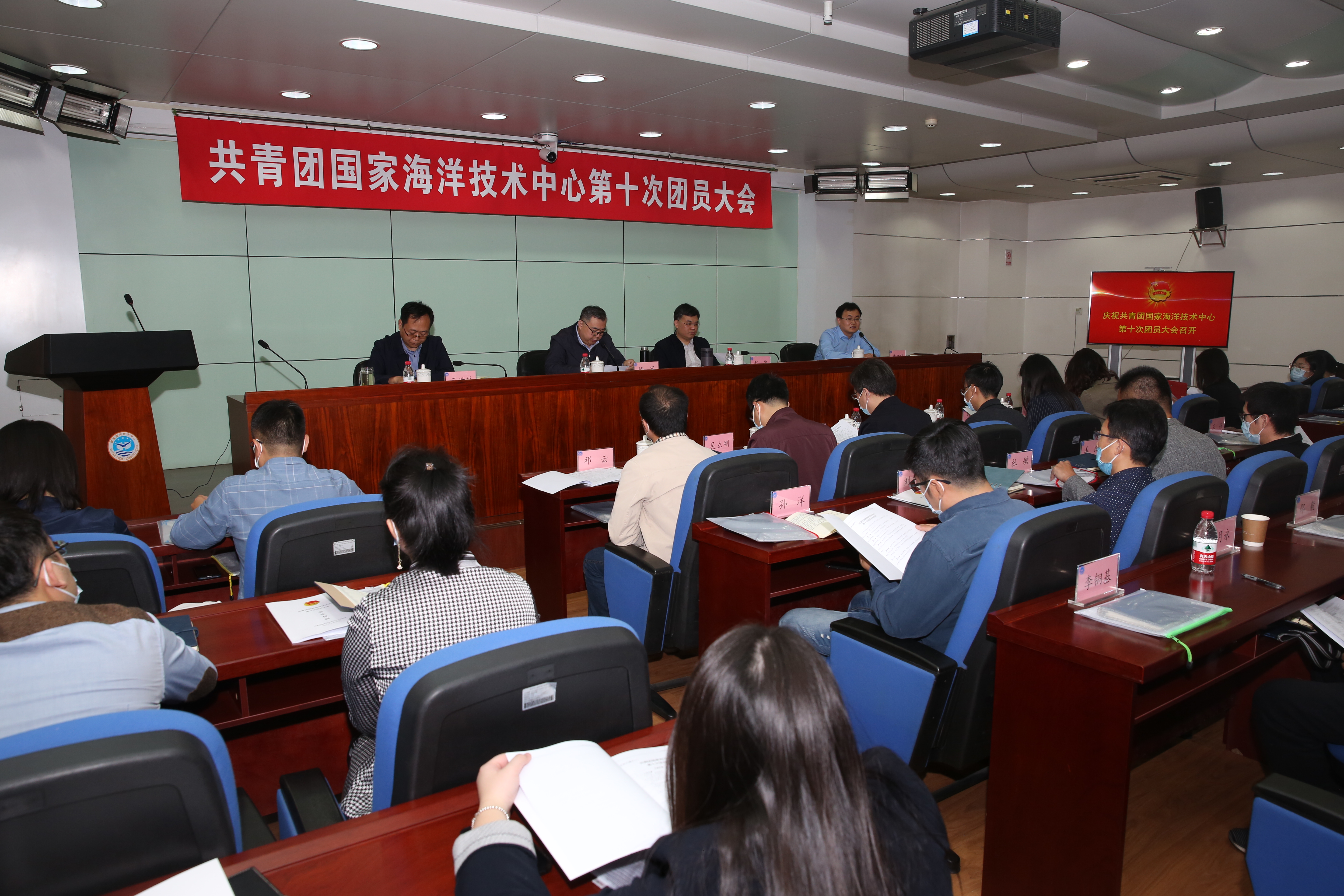 谷雨時節萬物生,春風拂面暖青年。在中國共青團成立100周年、“五四”青年節到來之際,4月20日上午,共青團國家海洋技術中心第十次團員大會召開。會議主要任務是以習近平新時代中國特色社會主義思想為指導,全面貫徹十九大及十九屆歷次全會精神和團的十八大精神,總結中心第九屆團委工作,選舉產生中心第十屆團委,部署今后一段時期中心共青團和青年工作。中心領導、部駐津單位團委書記、天津市規劃與自然資源局團委書記、中心各黨支部書記、全體團員青年等共計90余人參加會議。會議由中心第九屆團委書記陳吉祥主持。