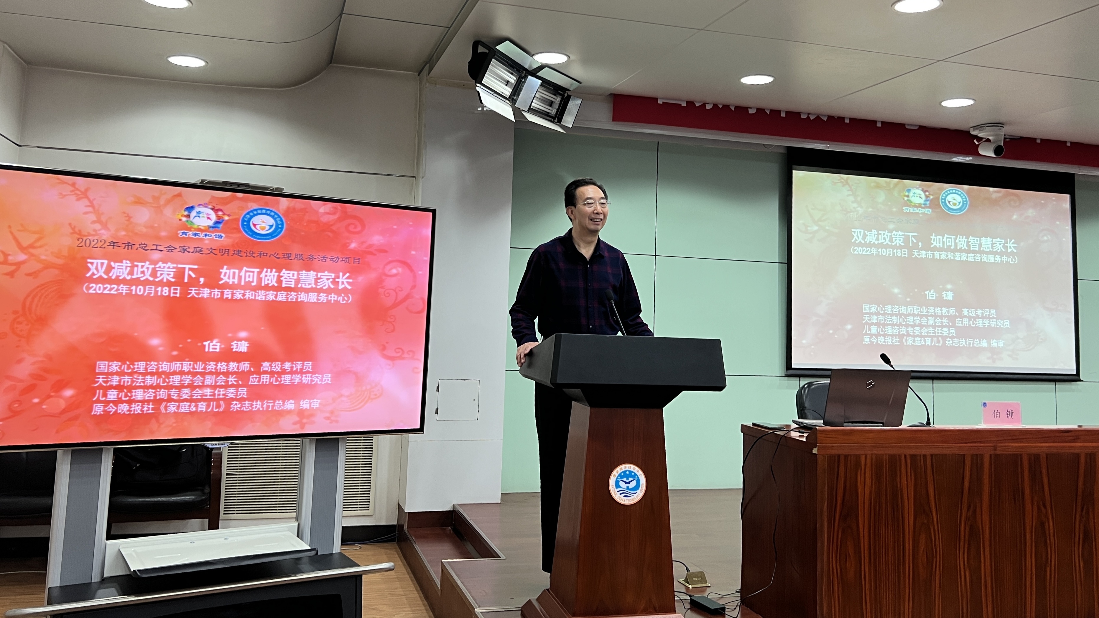 10月18日,中心工會聯合計量中心工會舉辦了一場家庭文明建設講座。國家心理咨詢師職業資格教師、高級考評員、天津市法制心理學會副會長、應用心理學研究員、兒童心理咨詢專業委員會主任委員、原今晚報社《家庭&育兒》雜志執行總編、編審伯鏞老師受邀到中心授課。