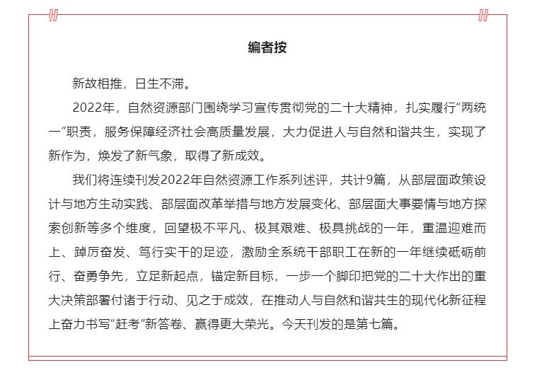 鑒往知來,篤行致遠。百年變局與世紀疫情疊加的2022年,自然資源部門履行“兩統一”職責,堅持陸海統籌,強化系統觀念,推動海洋經濟發展、保護利用海洋資源、參與全球海洋治理,交出了一份加快建設海洋強國的答卷。