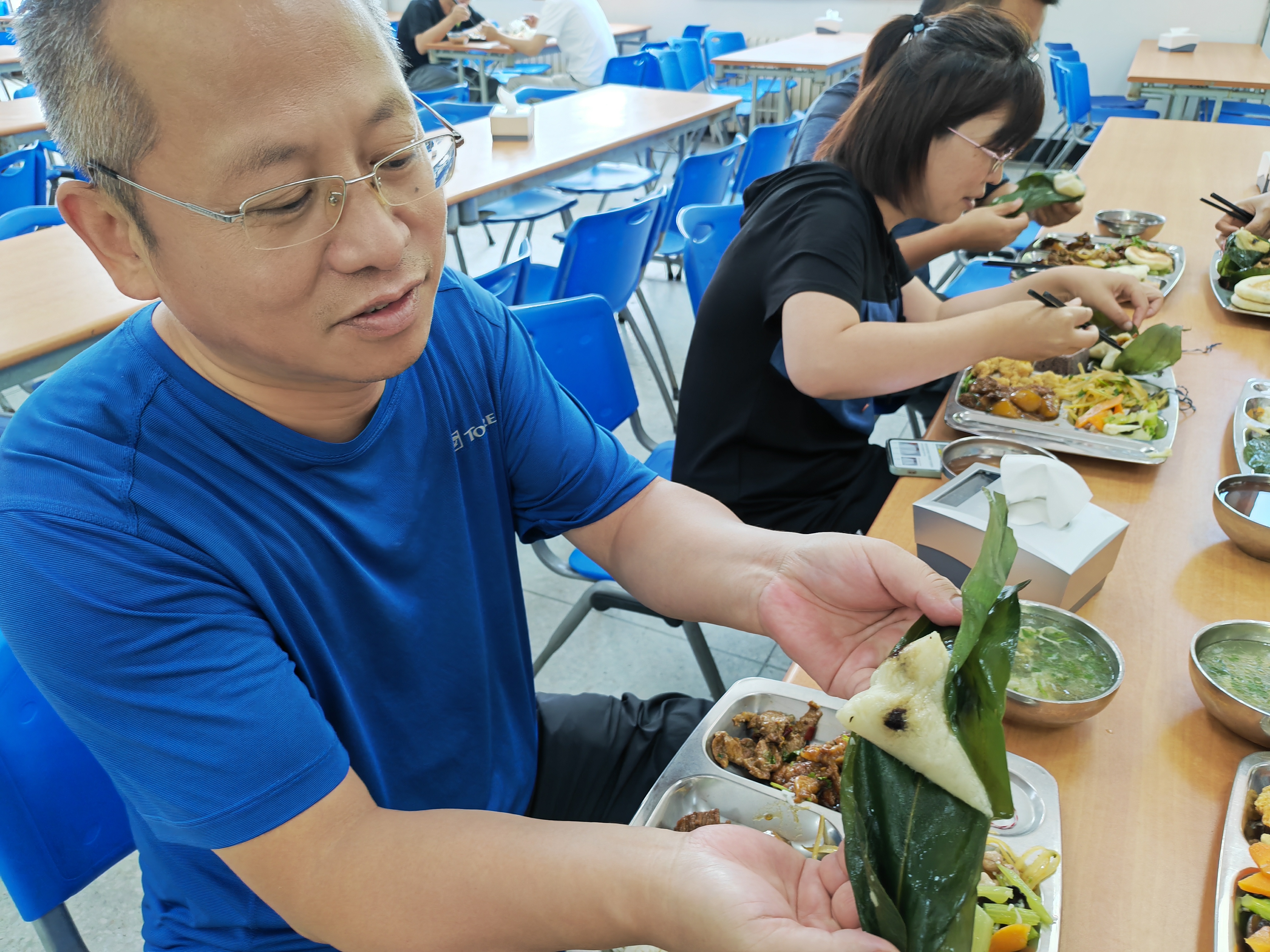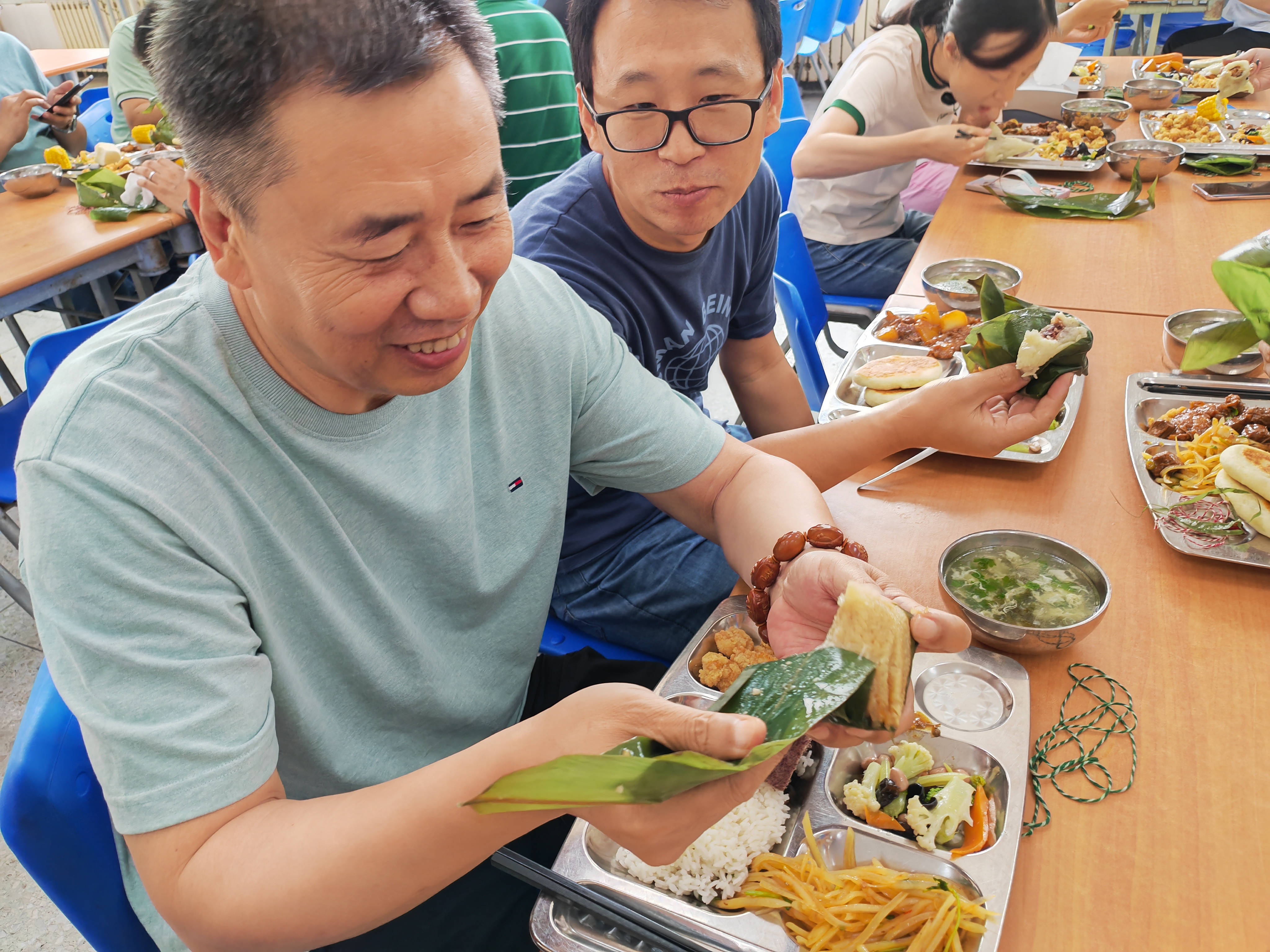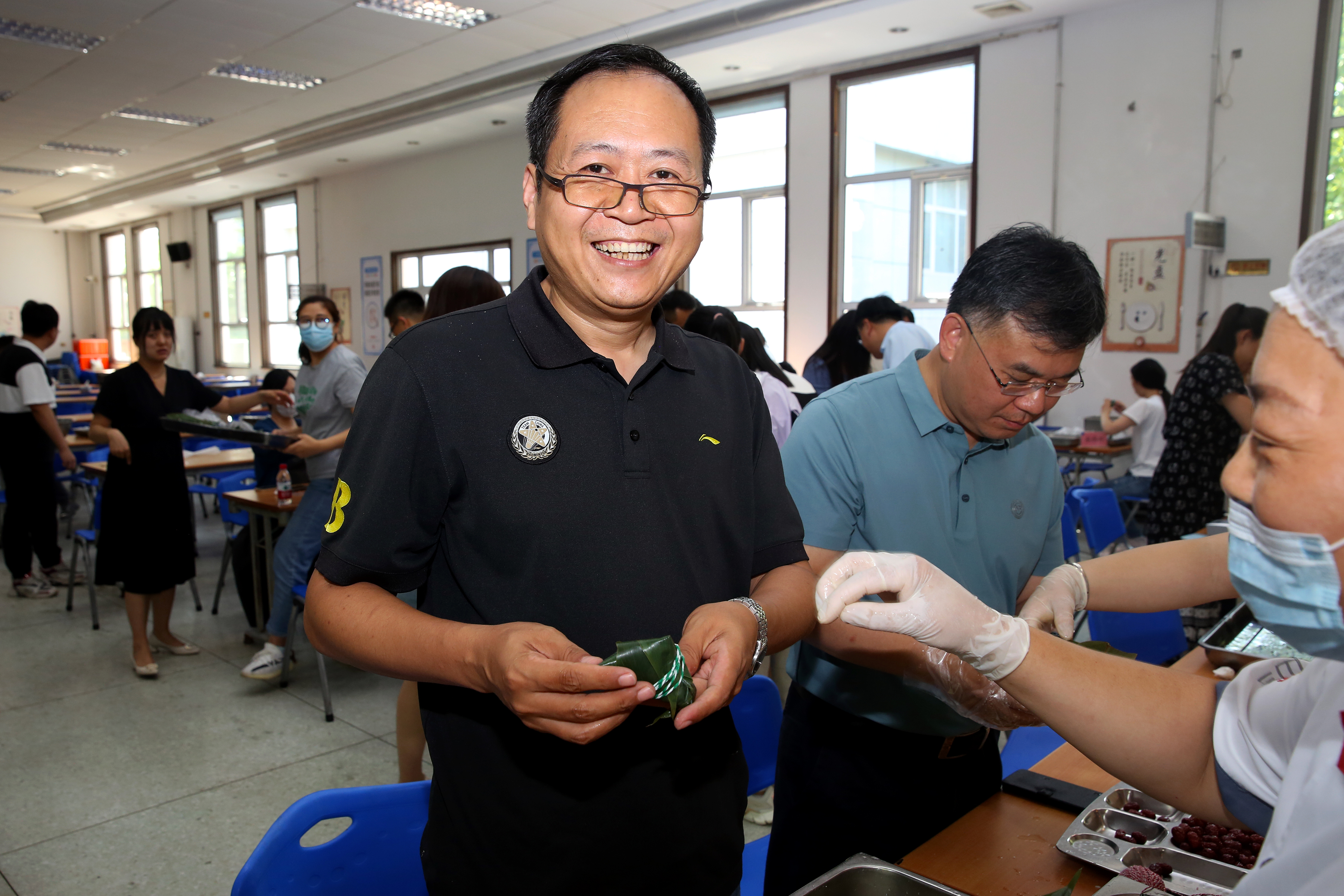 6月21日,中心職工在食堂吃午餐時都可以挑選一枚粽子,其中有200余枚是前一天同事們包的,大家吃得津津有味,對于包粽子活動也是津津樂道。在全部的300余枚粽子中,有10枚是蜜豆餡兒的幸運(yùn)粽,拿到并現(xiàn)場展示的同事可領(lǐng)取精美扇子一把,最終有6位同事收獲了這份幸運(yùn)。(工會)