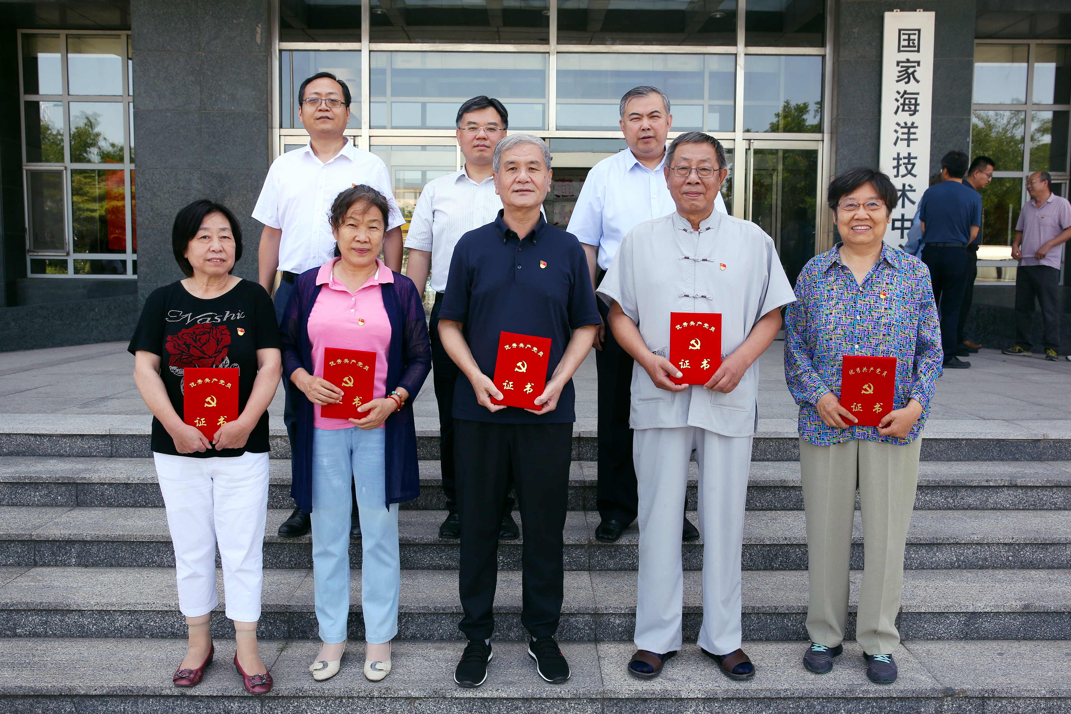 中心副主任隋軍在會上宣讀了“光榮在黨50年”老黨員名單、中心“兩優一先”表彰決定和天津市“工人先鋒號”表彰決定。中心領導為5位光榮在黨50年老黨員頒發紀念章并敬獻鮮花,向獲此殊榮的老黨員表達崇敬之情,同時也激勵著在場的中青年黨員更加堅定永遠跟黨走的信念。