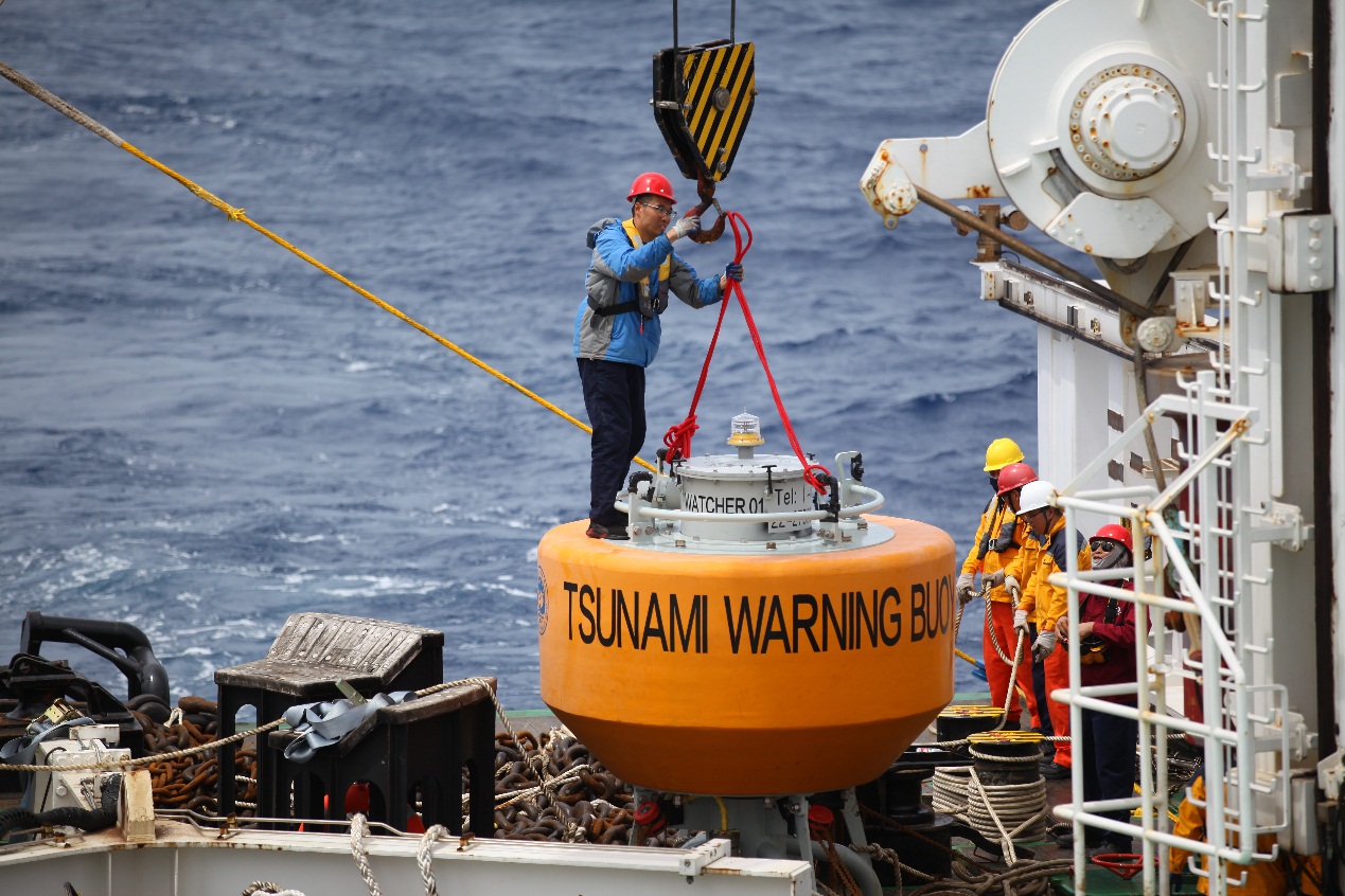 圖1 海嘯預警浮標吊放準備